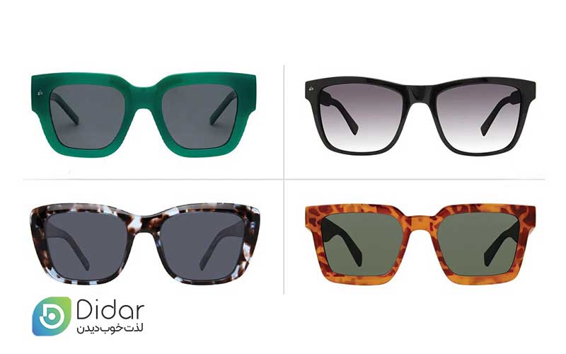عینک‌ های آفتابی مربعی، لنزهای بزرگ و بلوکی با دو طرف را نشان می‌ دهند. علیرغم نامش، این مدل عینک آفتابی نباید بیش از حد زاویه دار باشد، گوشه های آن اغلب نرم هستند و مکمل کاملی برای شکل جسورانه آن هستند.